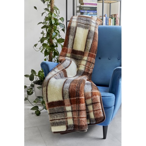 Natural Merino Wool Blanket Bed Throw , Bed Cover Sofa Pad Brown CHECKED